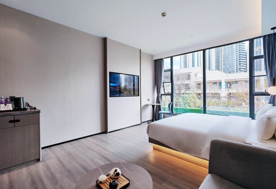 靜享·語音大床房【落地窗~馬桶加熱~會客茶具~手機投屏】